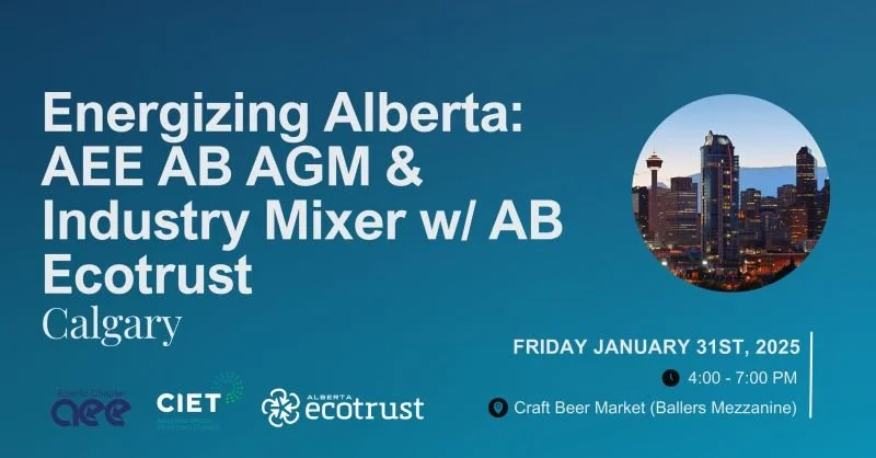 Following the AGM and elections, we will transition into a mixer, a great networking opportunity. This extended event will offer our members a chance to connect with industry peers, share insights, and explore new opportunities. The event is sponsored jointly by the AEE AB Chapter, Alberta EcoTrust and CIET.