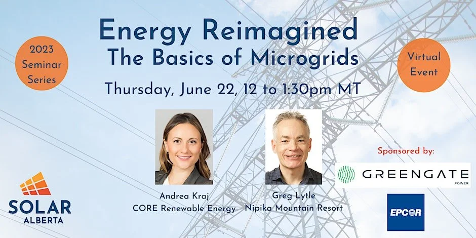 Join us on June 22nd for an engaging conversation about microgrids and how solar can be integral to them. In this seminar, Dr. Andrea Kraj will dive into what microgrids are and how they work. Then, Greg Lytle will provide a concrete example of a successful solar-powered microgrid at Nipika Mountain Resort.