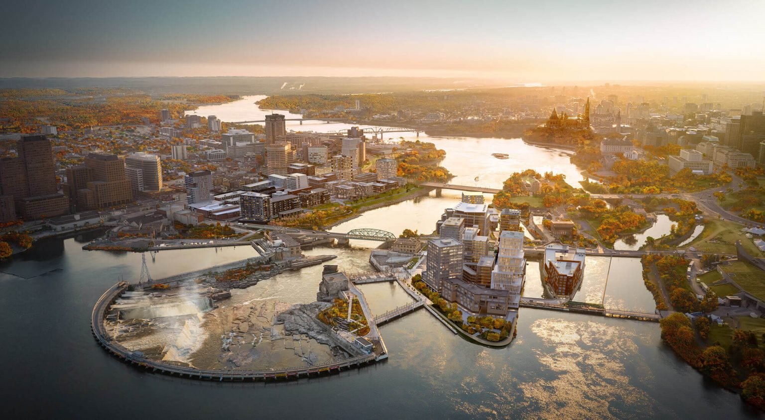 Zibi is located smack dab in the middle of the Ottawa River; half of the project is on the west banks in Ottawa and the other half is Chaudière Island in Gatineau, Quebec.